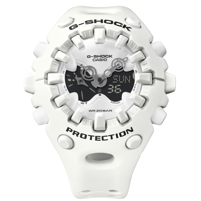 A Casio G-Shock kollekció egyik legújabb és legkülönlegesebb darabja a GA-V01-7AER, amely a legendás ütésállóságot egy teljesen új, futurisztikus dizájnnal ötvözi. Az organikus formák, a masszív indexek és a modern analóg-digitális kijelző egyedi és karakteres megjelenést biztosítanak.