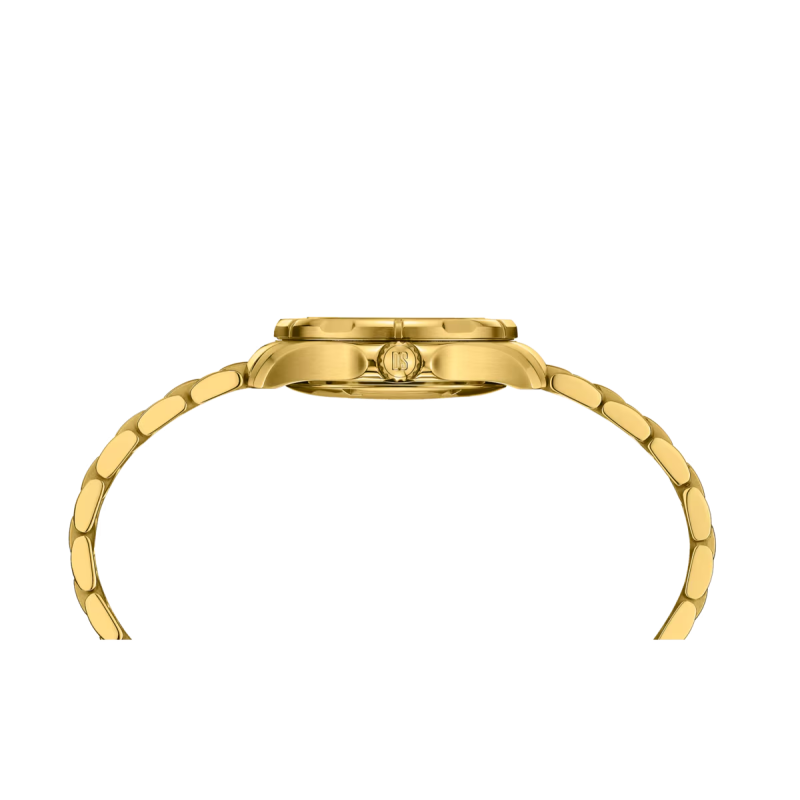 A Certina DS Action Lady C032.951.33.361.00 a sportos nőiesség és a svájci precizitás ragyogó találkozása. Teljes arany PVD bevonatú tok, forgólünetta, csillogó arany számlap, és a COSC által hitelesített Precidrive™ szerkezet – ez a 29 mm-es chronométer karóra nemcsak lenyűgöző megjelenésű, hanem valóban kivételesen pontos is. A 200 m vízállóság és a DS Double Security rendszer aktív életre is tökéletesen alkalmassá teszi.