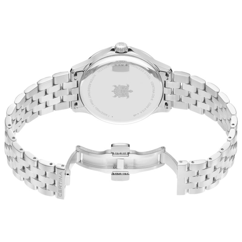 A karcálló, tükröződésmentes zafírkristály és a DS (Double Security) technológia biztosítja a tartósságot és a vízállóságot, így a DS-8 Gent nemcsak elegáns, de rendkívül strapabíró is. A 316L rozsdamentes acél tok és szíj a minőségi anyaghasználat garanciája, ami hosszú éveken át megőrzi az óra kifogástalan megjelenését.