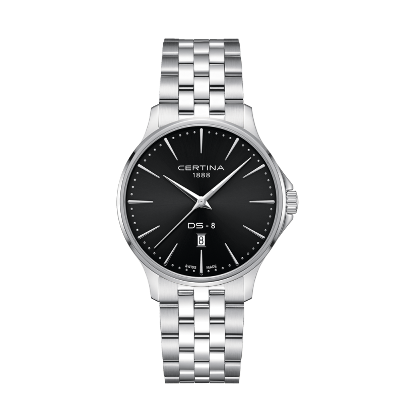 A Certina DS-8 Gent 40mm fekete számlappal a letisztult elegancia és a svájci megbízhatóság tökéletes szimbóluma – ideális választás azoknak, akik stílusban és precizitásban sem ismernek kompromisszumot.