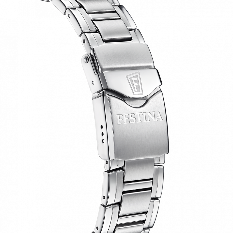 A Festina F20042/3 Swiss Made férfi karóra elegáns megjelenést és megbízható teljesítményt nyújt. A nemesacél tok és a nemesacél szíj harmonikus kombinációja időtálló stílust képvisel, amelyet a zöld számlap tesz egyedivé.