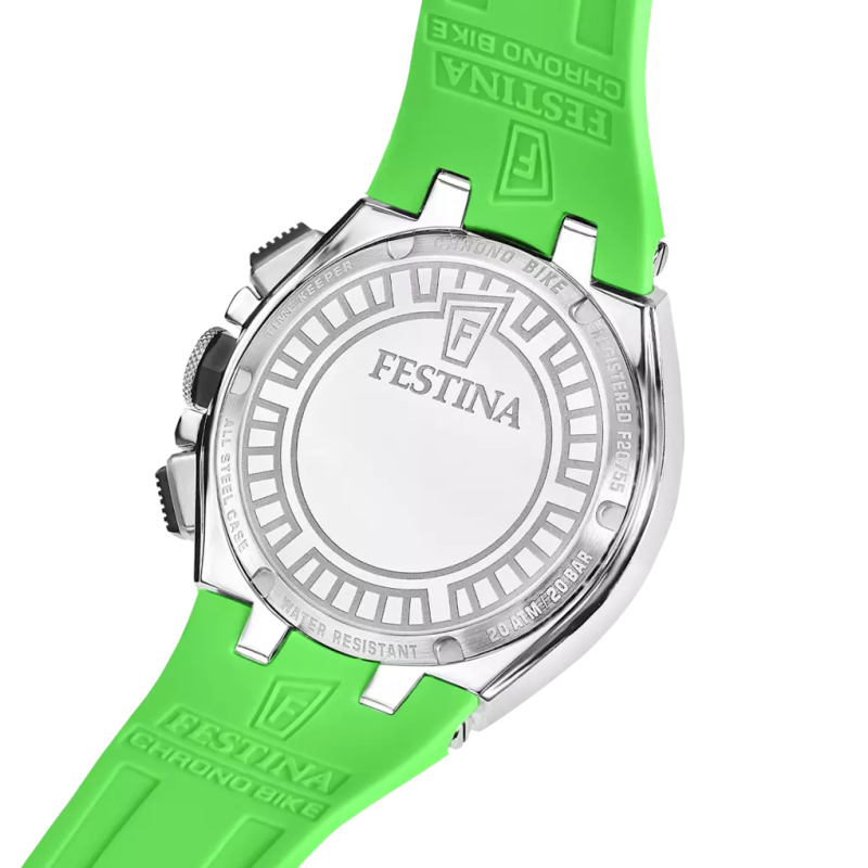 A Festina Chrono Bike kronográf karóra a sportosság és az elegancia tökéletes ötvözete. A zöld / fekete számlap és a nemesacél tok elegáns, mégis sportos megjelenést biztosít.