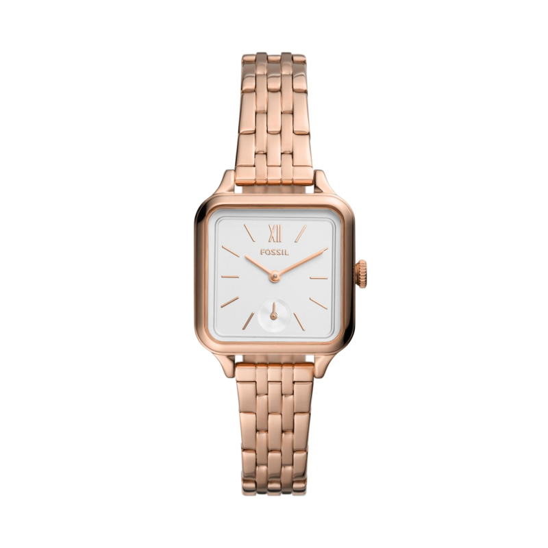 A Fossil Colleen a nőies elegancia és a modern stílus tökéletes megtestesítője. A fehér számlap és a rose gold bevonatú nemesácél tok kifinomult, divatos megjelenést biztosít, amely minden alkalomra tökéletes választás.