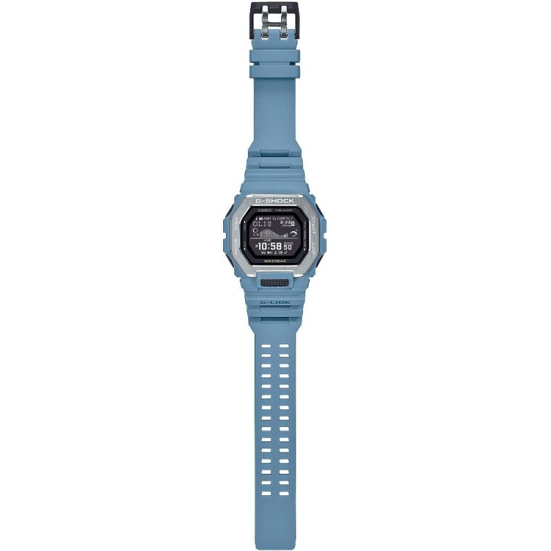 Ismerd meg a Casio GBX-100-2AER G-Shock férfi karórát, amely tökéletes választás a szörfözés és az extrémsportok szerelmeseinek. Ez az óra a G-LIDE sportvonal új tagja, amely számos speciális funkcióval rendelkezik, mint például a Holdfázis- és napkelte/napnyugta kijelzés. Az óra egyedülálló okostelefon-alkalmazással csatlakoztatható, amely több mint 3300 hely adatait képes továbbítani az órára, így mindig naprakész információkat kaphatsz.