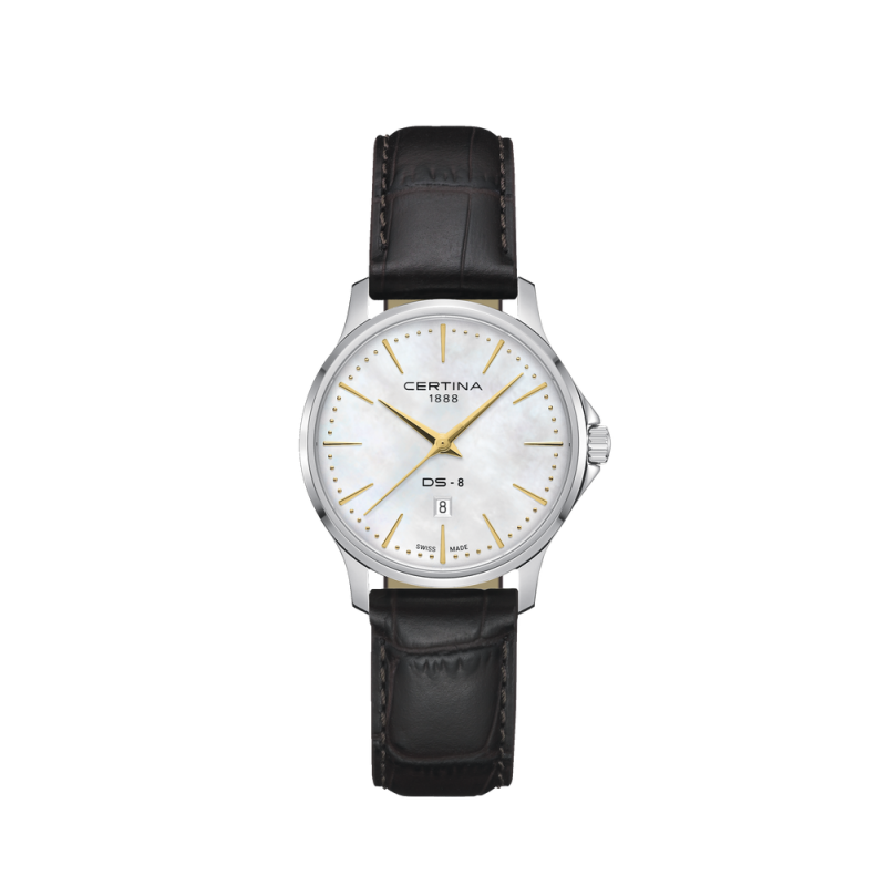 A Certina DS-8 Lady 31mm a kifinomult elegancia és a svájci precizitás tökéletes egyensúlya. Letisztult megjelenésével, gyöngyház számlapjával és karcsú tokjával ideális választás azoknak a hölgyeknek, akik időtálló stílust keresnek a mindennapokban.