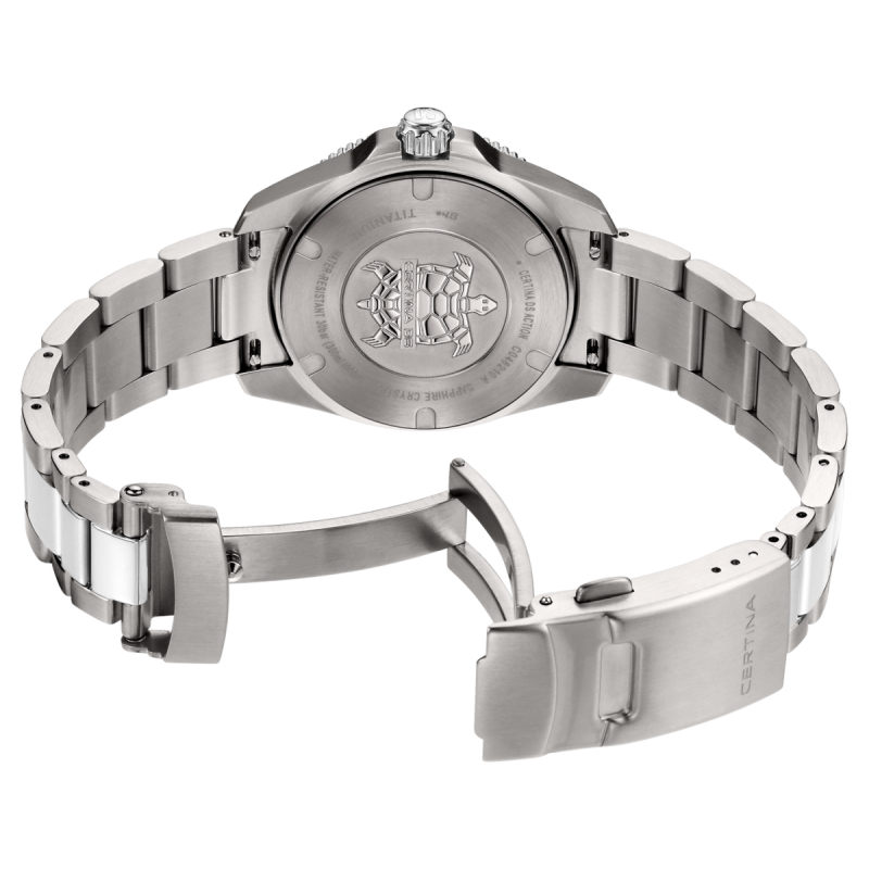 A Certina DS Action 34.5mm titán női karóra könnyed, elegáns és megbízható – a modern nők számára, akik értékelik a precizitást és a kényelmet.
