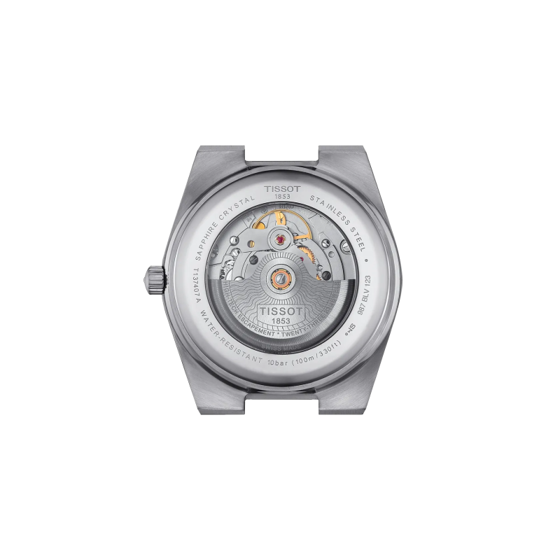 A Tissot PRX Powermatic 80 a '70-es évek ikonikus formavilágát hozza vissza, modern technológiával ötvözve. A 39,5 mm-es 316L rozsdamentes acél tok és integrált acél szíj időtálló eleganciát sugároz, míg a fekete számlap finom textúrája kiemeli a modell karakterét.