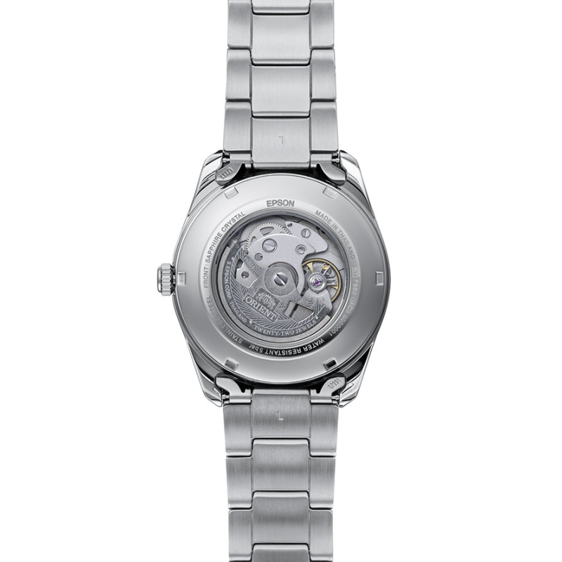 A 41 mm-es rozsdamentes acél tokban az Epson/Orient F6B24 automata szerkezete dolgozik, 22 kővel, kb. 40 órás járástartalékkal és másodperc-stop (hackelhető) funkcióval. A karcálló zafírkristály üveg hosszú távon is megőrzi az óra prémium megjelenését.