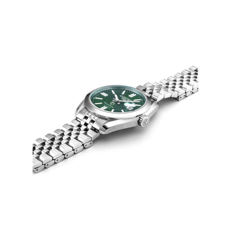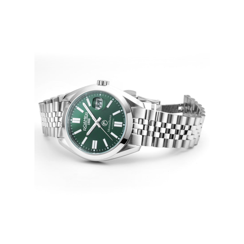 A Roamer Montalbano Gents ezüst színű nemesacél kivitelben kapható, lenyűgöző zöld számlappal, amely igazán modern és elegáns megjelenést biztosít. A Soprod P024 svájci automata szerkezet megbízható működést garantál, míg a zafírüveg és az üveg hátlap prémium részletekkel emeli ki a modell értékét. Ideális, ha stílusban és minőségben is a legjobbat keresed.