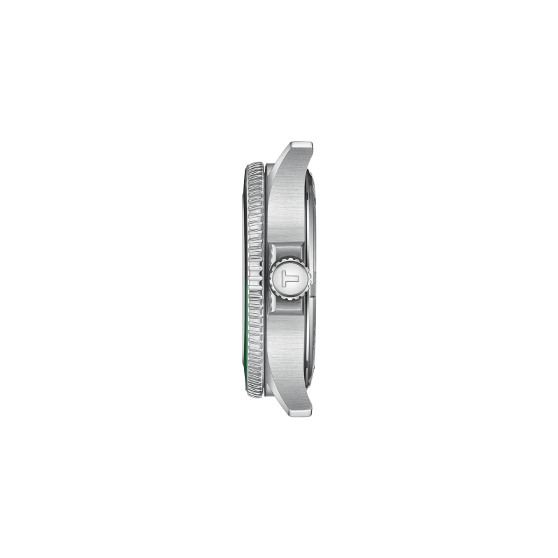 A Tissot Seastar 1000 GMT a sportos elegancia és a svájci technológia tökéletes ötvözete. A 40 mm-es rozsdamentes acél tok és a két tónusú – zöld és fekete – elforgatható lünetta modern, karakteres megjelenést biztosít, amely ideális mind víz alatti kalandokhoz, mind hétköznapi viselethez.
