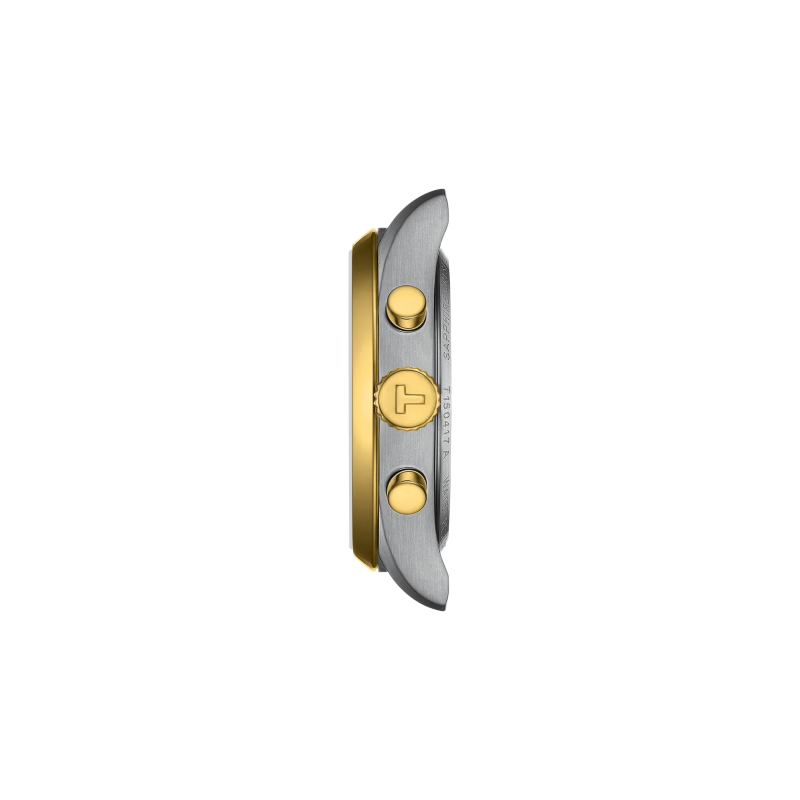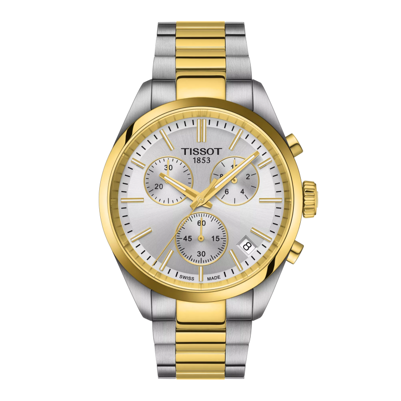 A Tissot PR 100 Chronograph 40mm kéttónusú kivitelben a férfi elegancia új szintjét képviseli – sportos, klasszikus és minden pillanatban stílusos.