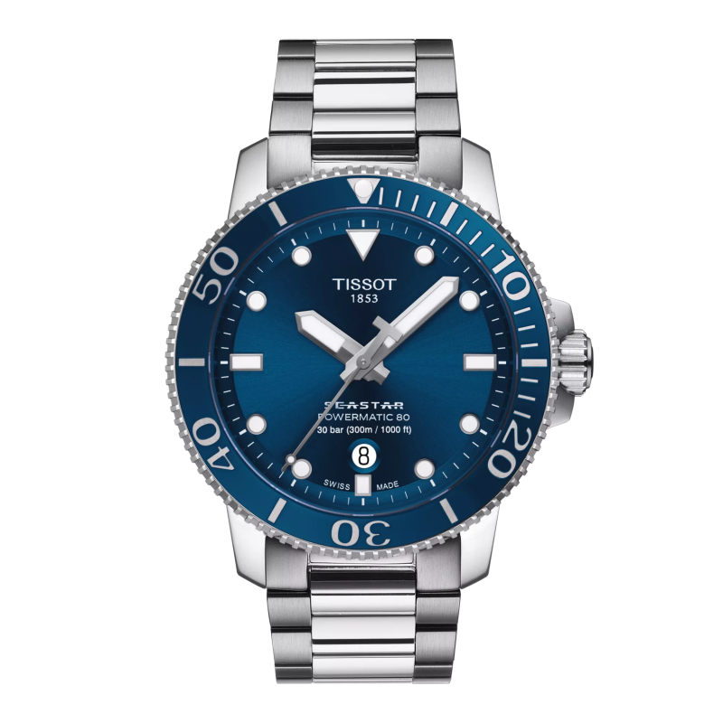 A Tissot Seastar 1000 a stílus és a teljesítmény tökéletes ötvözete, amelyet a vízisportok szerelmeseinek terveztek. A 30 bar (300 m) vízállóság, a csavarzáras korona és hátlap, valamint a kerámia lünetta garantálják a megbízható működést a legkeményebb körülmények között is.
