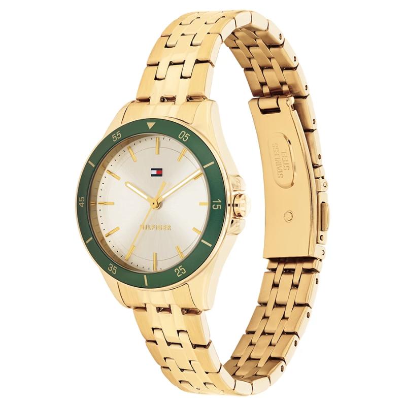A Tommy Hilfiger TH1782892 Jade női karóra ideális választás, ha egy elegáns, arany színű, mégis friss és karakteres megjelenésű modellt keresel különleges zöld részletekkel.